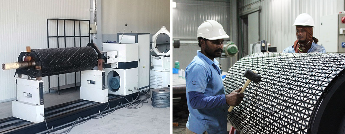 Since several years, we offer ceramic lagging in the market with great success. It provides far higher belt traction and improves belt tracking, reduces belt tension, reduces belt spillage and overall enhances belt performances with the most important attribute being far superior wear resistant compared to standard lagging.